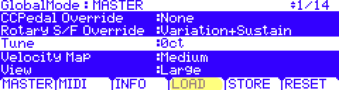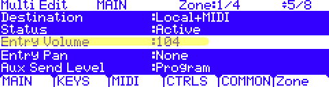 - On the MAIN page, set the ‘Entry Volume’ to taste (range None, 0-127):