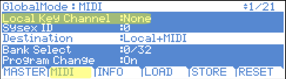 - Press MIDI (soft button);