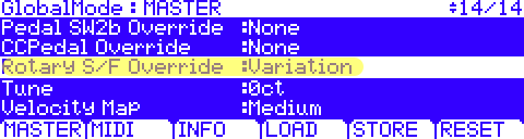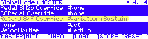 “Variation” = only the Variation (Rotary S/F) button will control the leslie rotary speed; the sustain pedal will act as traditional sustain.