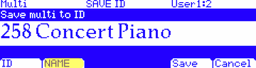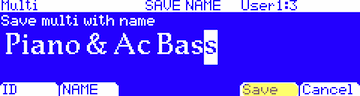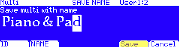 - Press the NAME soft button to name your Multi creation:
