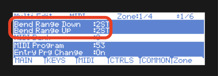Pitch bend range is edited per Multi zone.