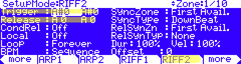 | Factory MIDI Setups: | 150 factory programmed MIDI setups – featuring up to 16 independent zones, effects, independent controller assignments, triggerable pattern-based “Riffs” and arpeggiator settings. |