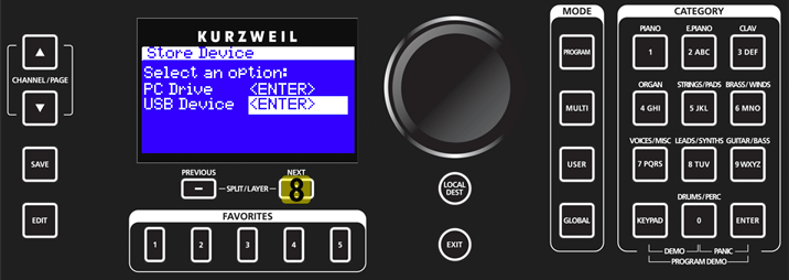 | USB: | • Two USB ports (one A port / one B port) • Complete MIDI functionality over USB • User program/multi file transfer to/from PC/Mac/Flash Drive • Operating System updates from PC/Mac/Flash Drive |