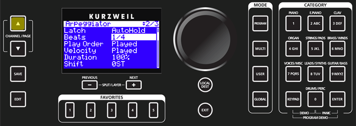 Looking for a pulse? Activate up to 4 independent Arps (1 per program, 4 per Multi) with dedicated on/off and tap tempo buttons.