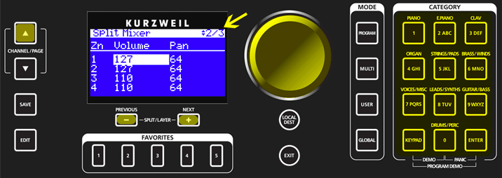 | Quick Split/Layer: | Easy access with adjustable relative volume (up to 4 zones) |