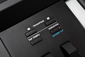 Dedicated -/+ Transpose, Tap Tempo and sound Variation controls conveniently located right above the Pitch/Modulation wheels.