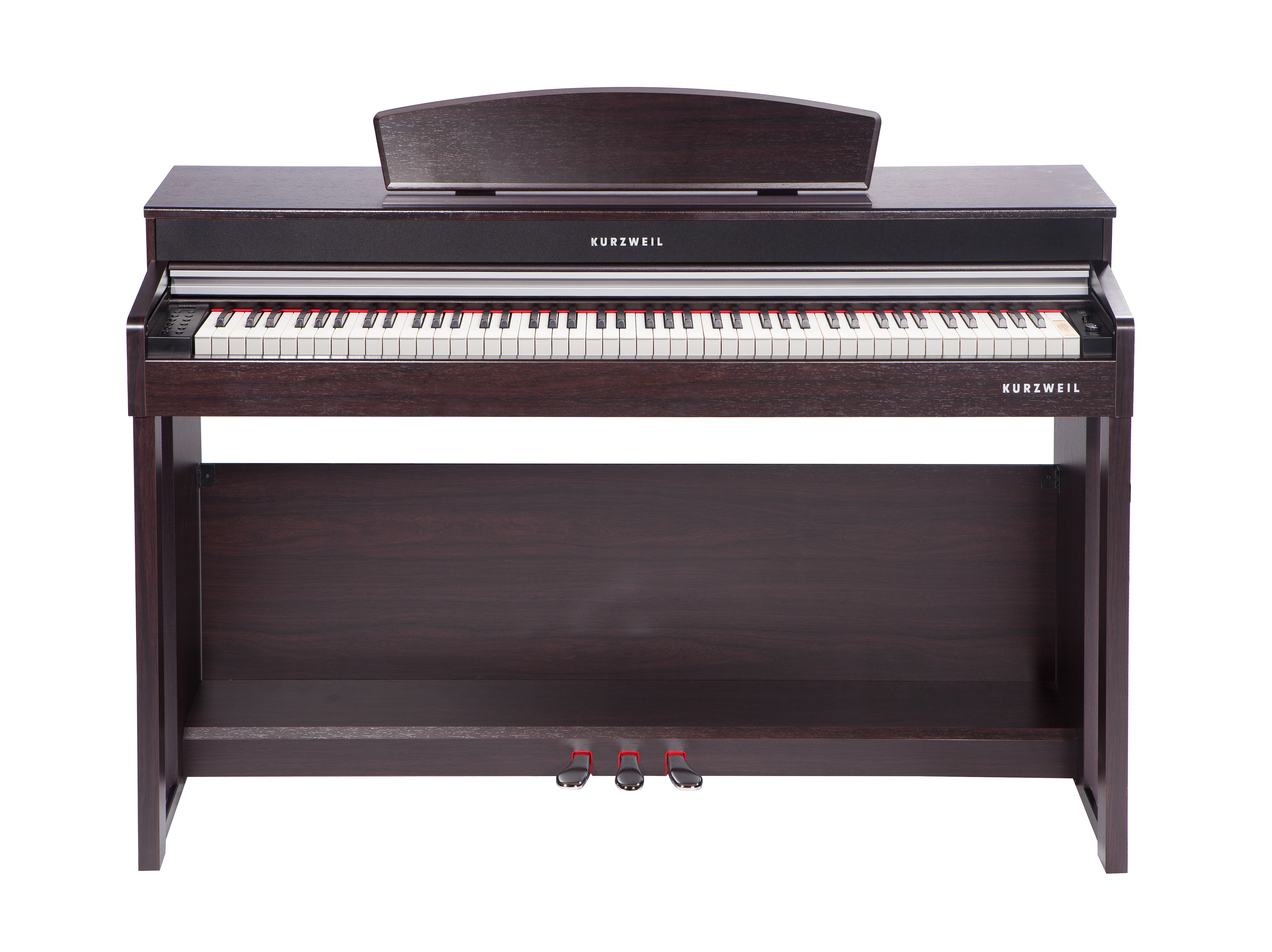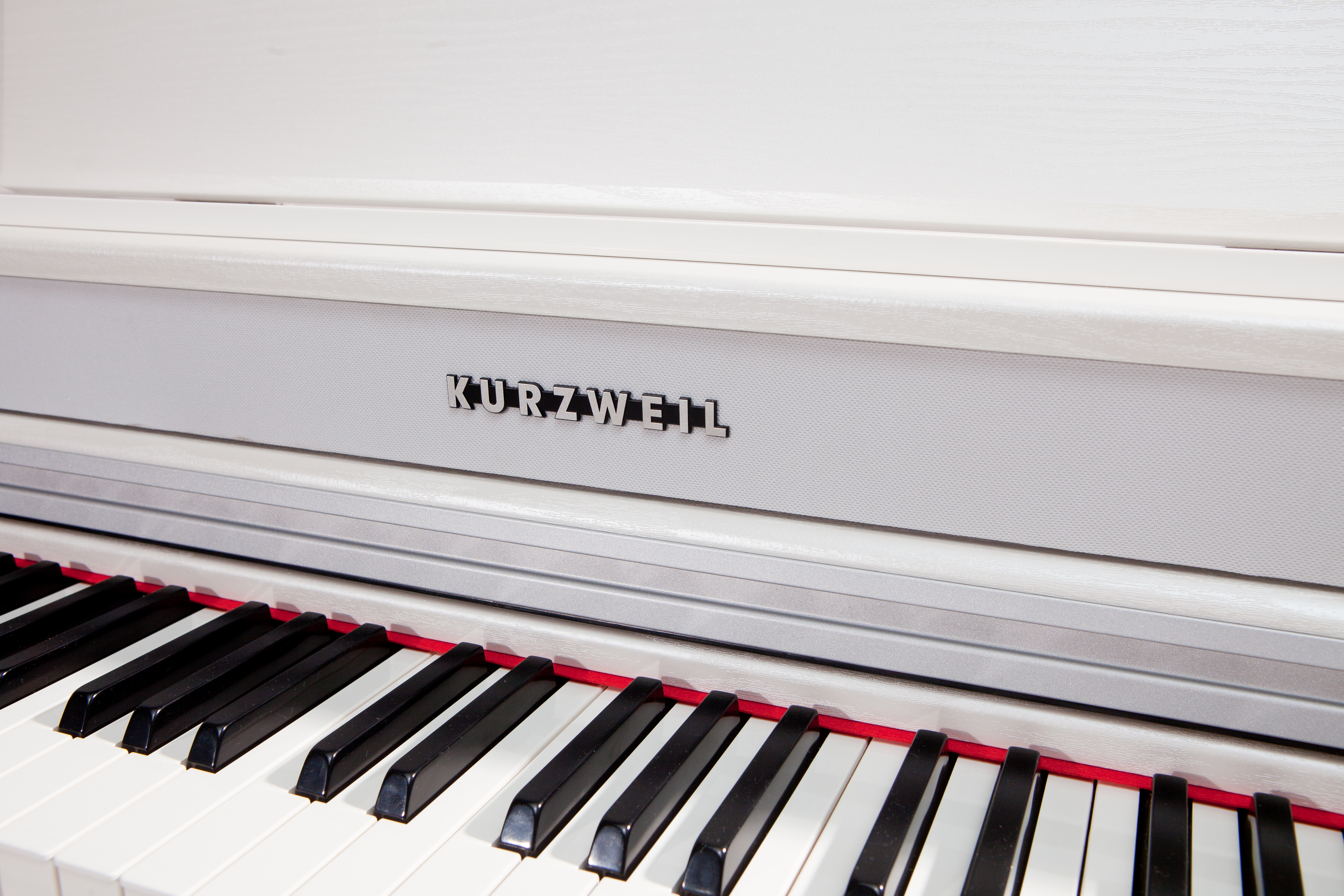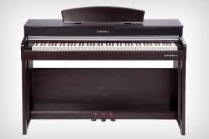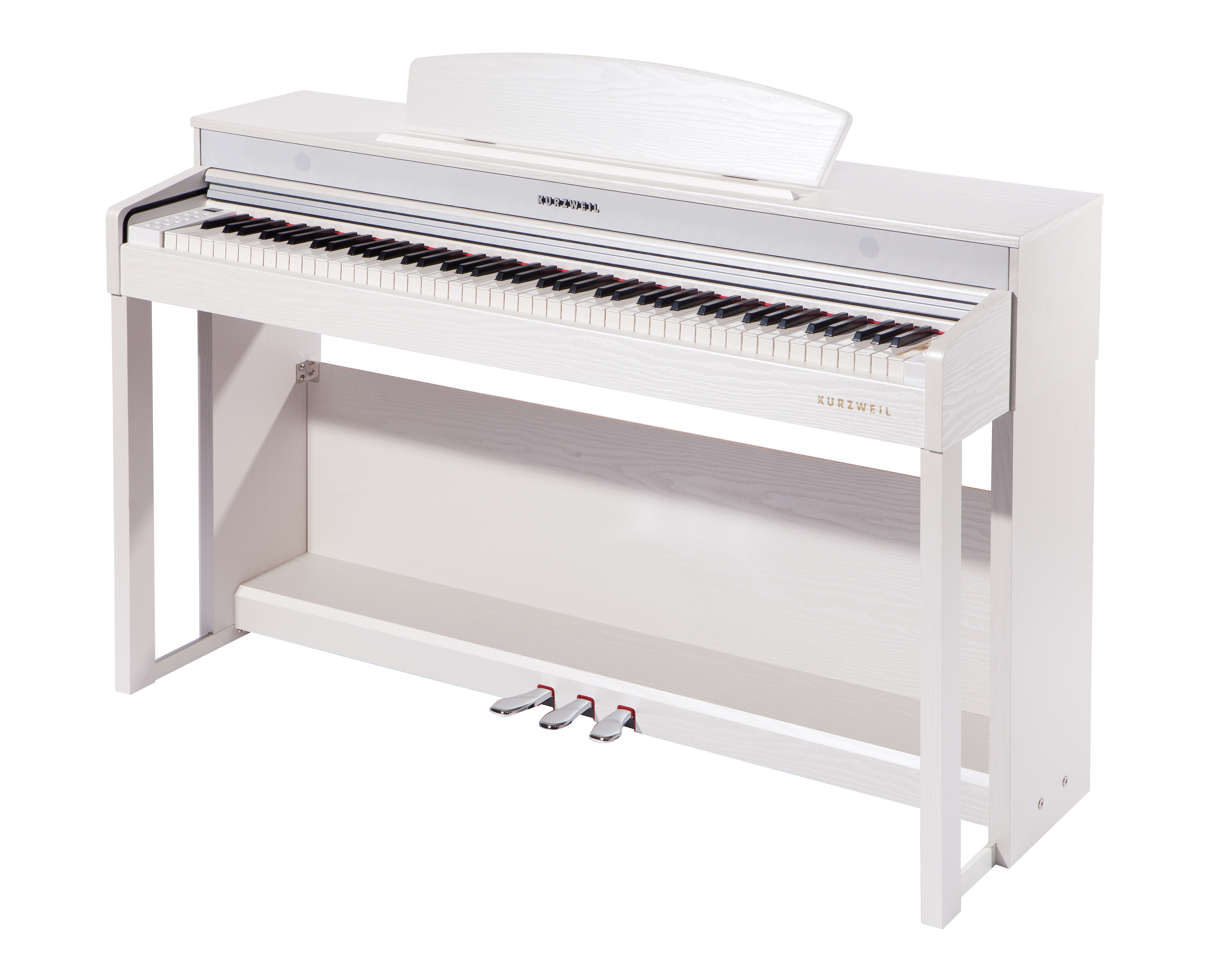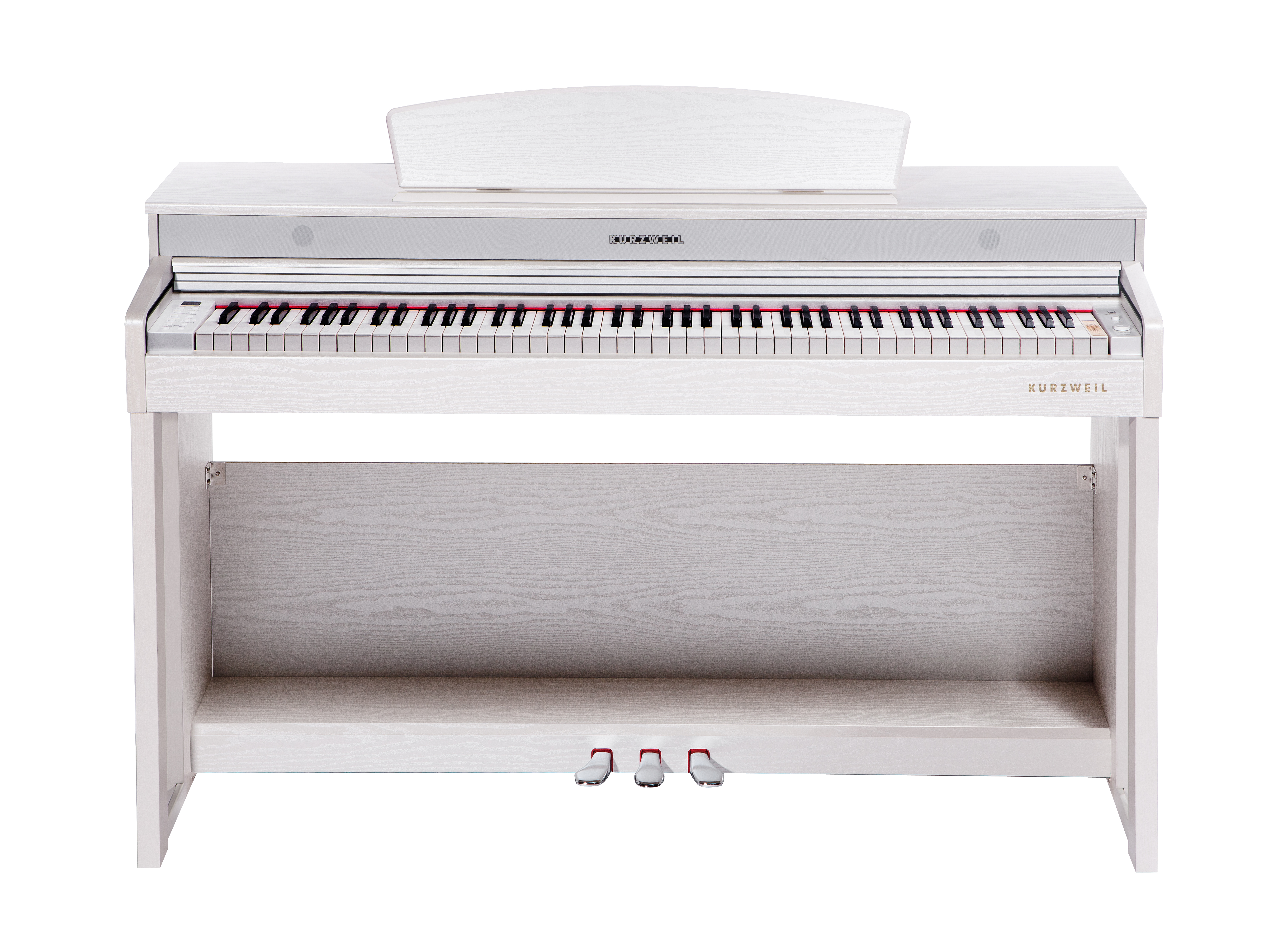 Spinet-stye cabinet available in satin rosewood or white finishes, featuring a built-in music stand, slide-out fallboard and powered by a 45 Watt 4-speaker, stereo sound system.