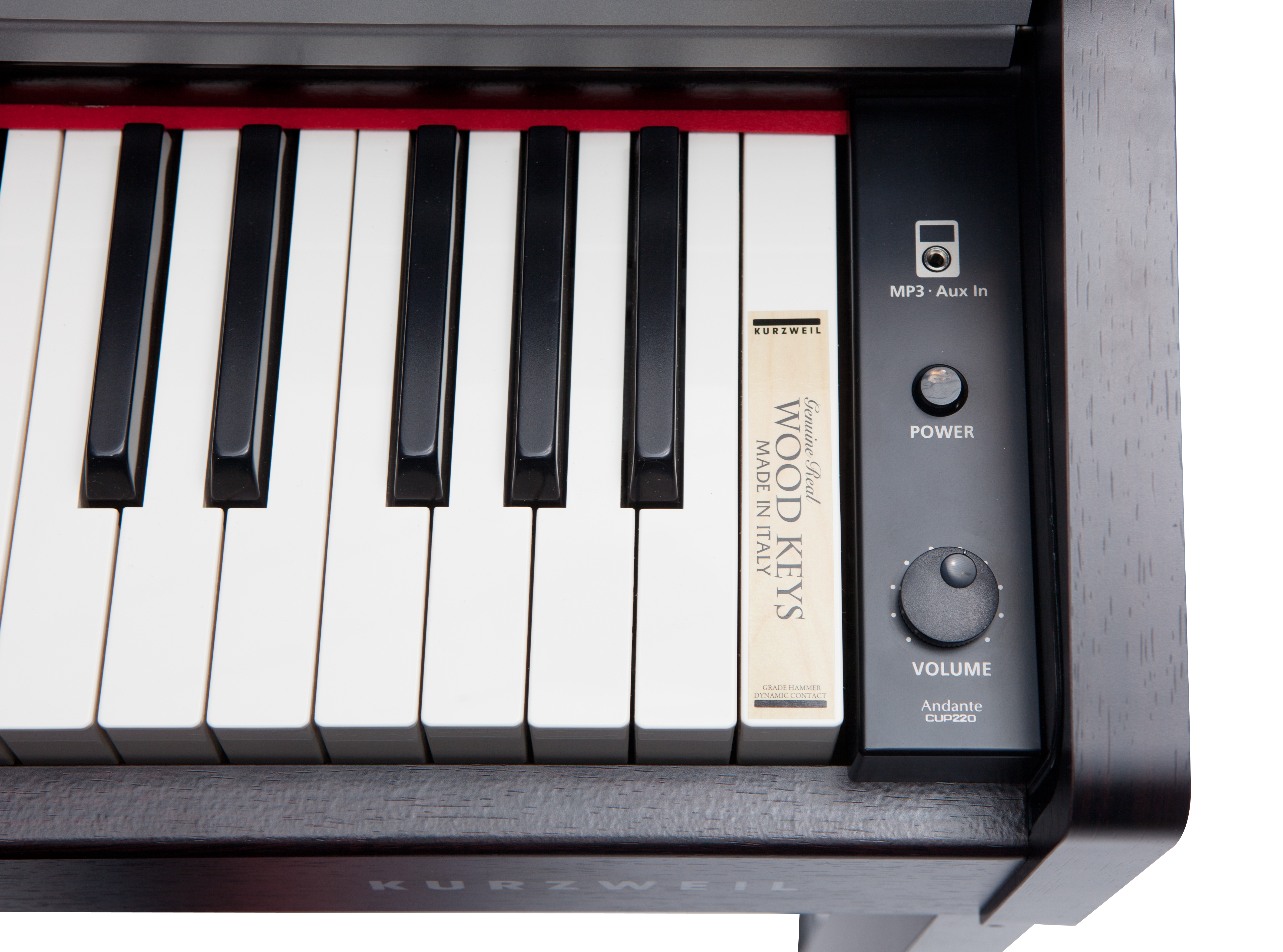 Authentic wooden keys with graded-hammer action for real piano performance.