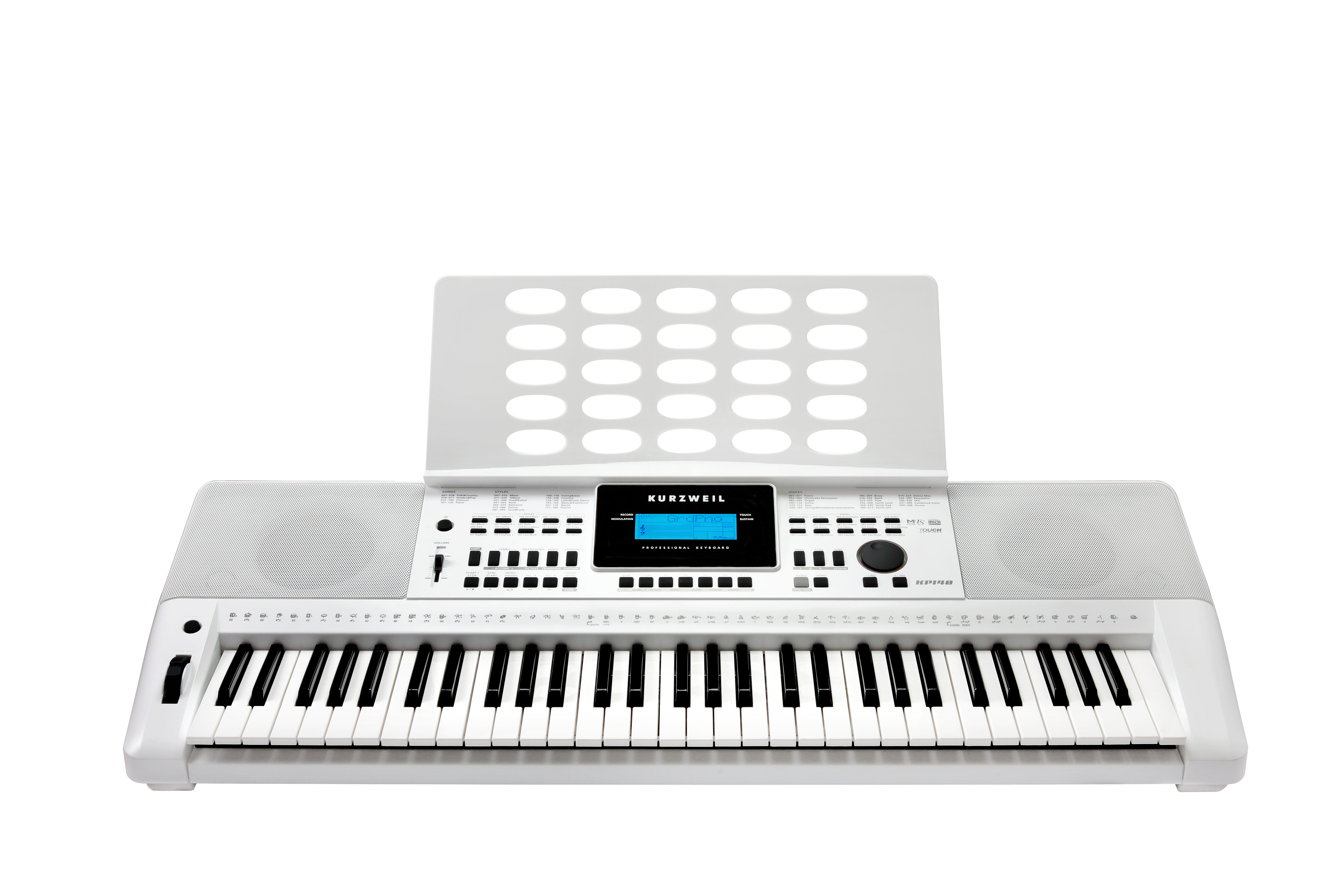 Housed in an attractive synth stye chassis the KP140 comes complete with a detachable music stand and built-in stereo sound system.