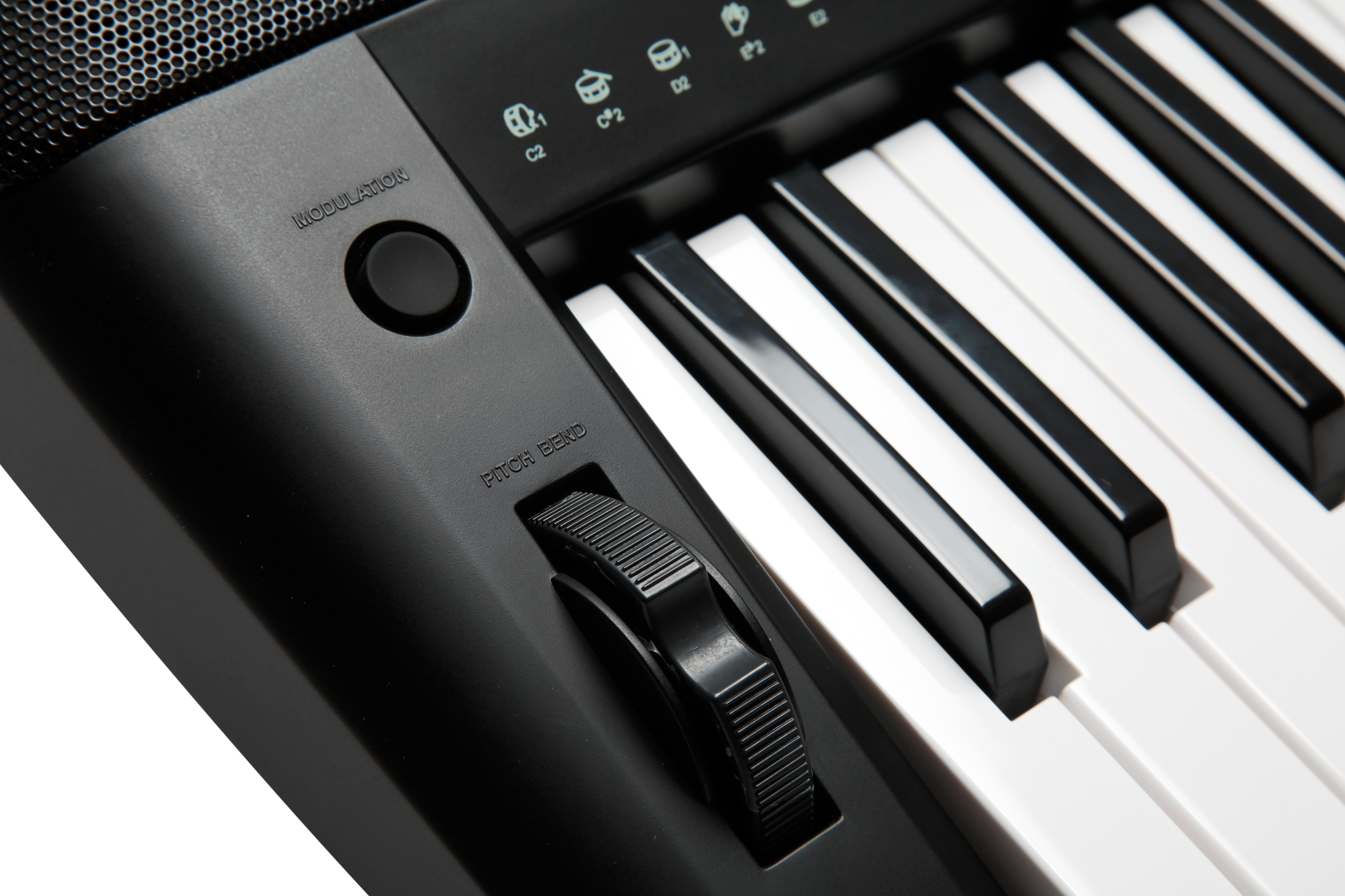 61-note, full-size, velocity-sensitive, synth-action keyboard with pitch bend and modulation controllers.