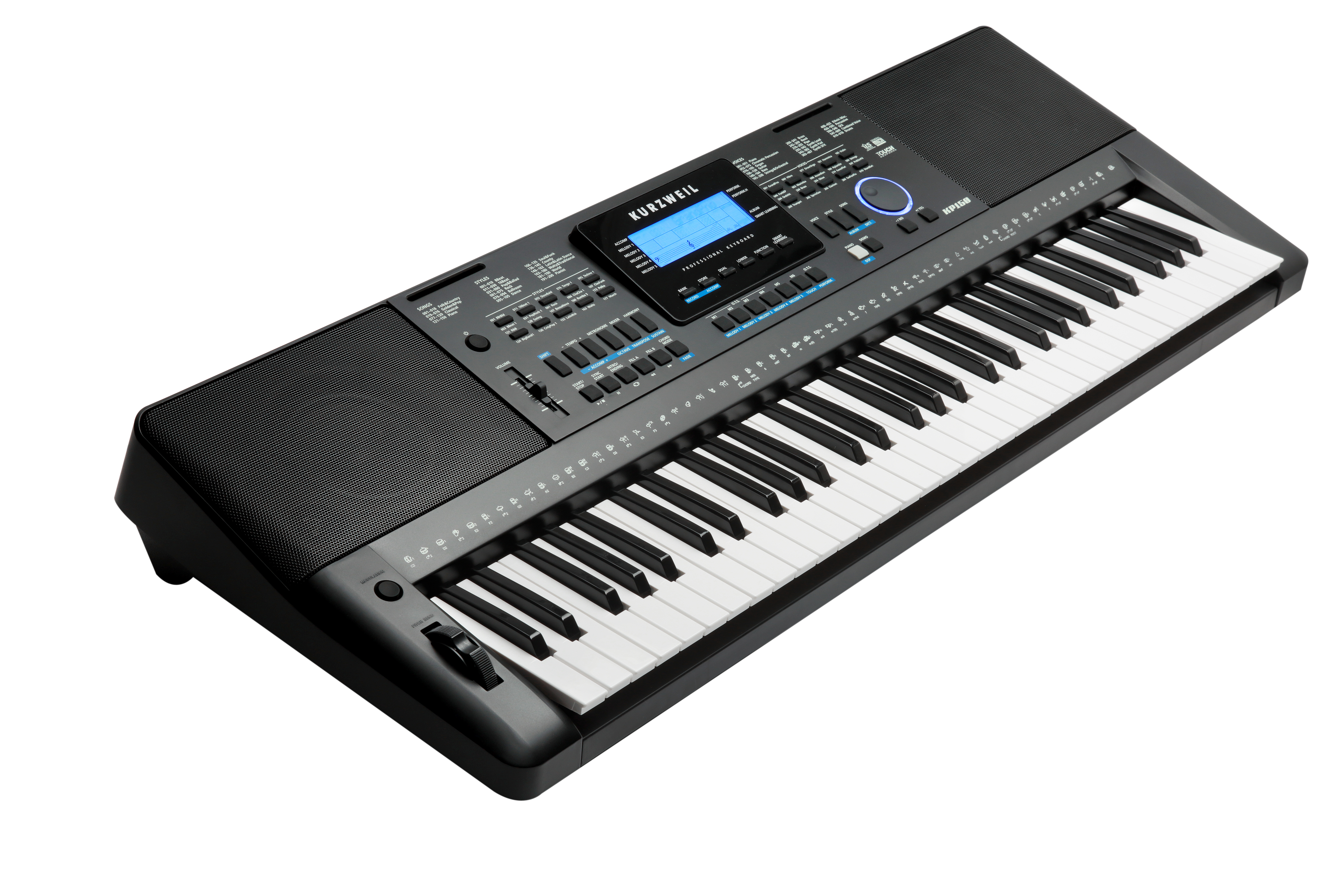 Housed in an attractive synth style chassis the KP150 comes complete with a detachable music stand and built-in 4-speaker stereo sound system.