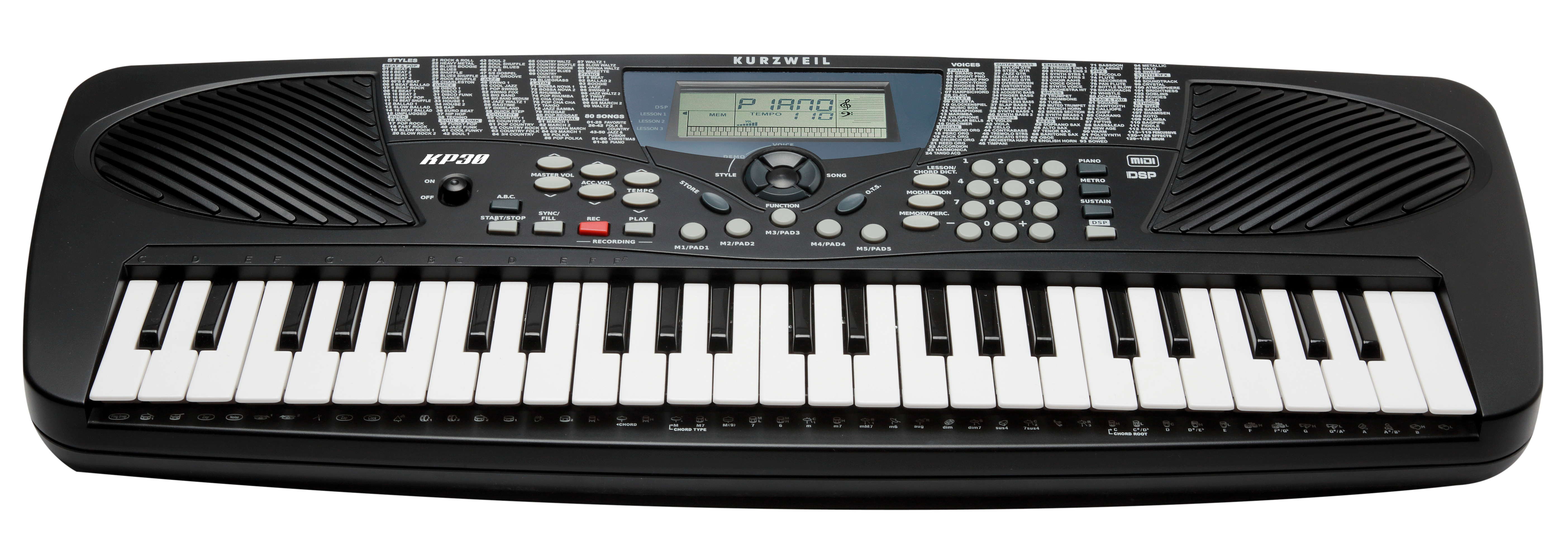 Enjoy a wide range of acoustic and electronic sound selections, featuring pianos, organs, guitars, strings, and synths.