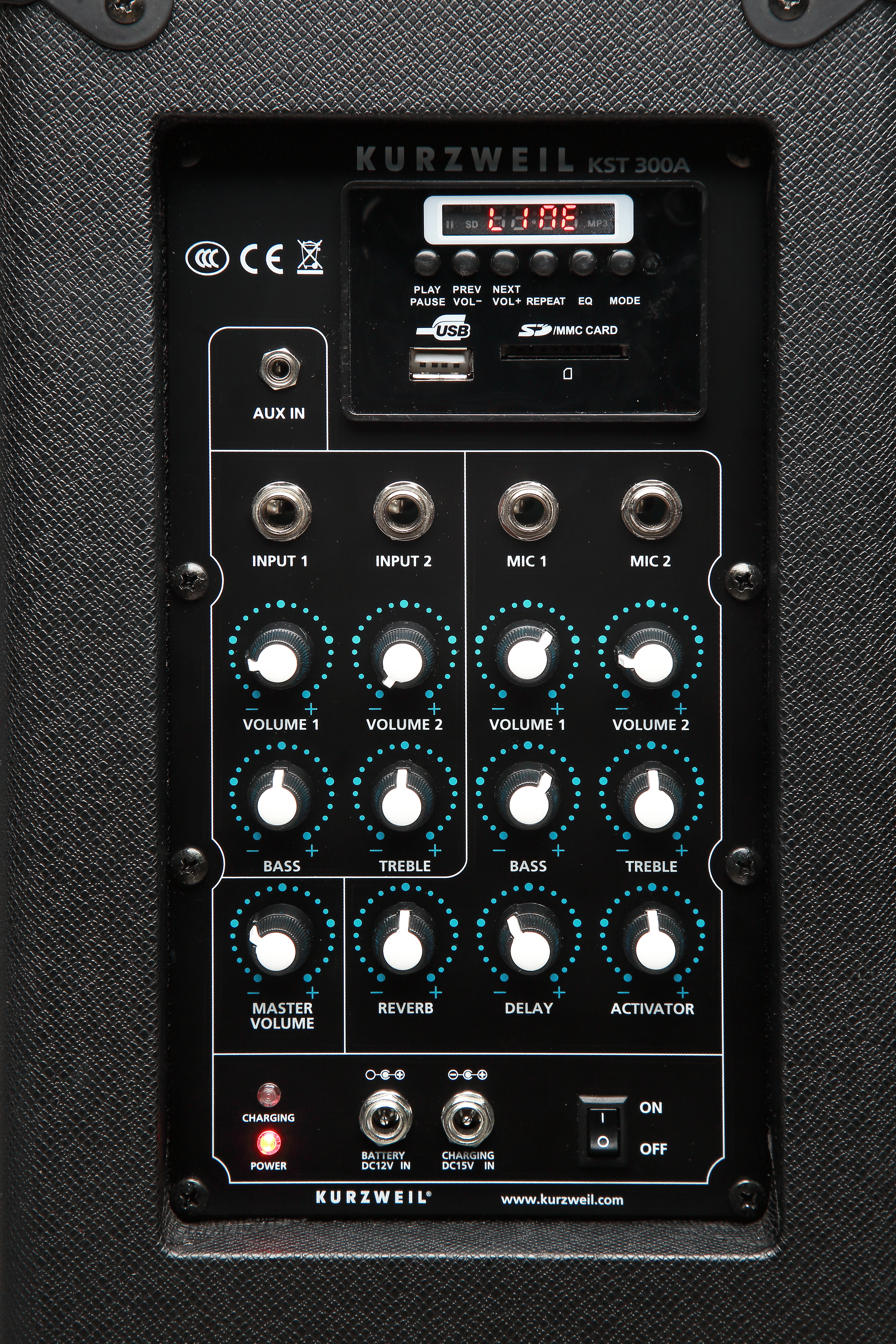 Play and sing along with prerecorded material by way of the built in USB and media card ports. Prefer to use your own player? Plug into the KST300A Aux input instead.