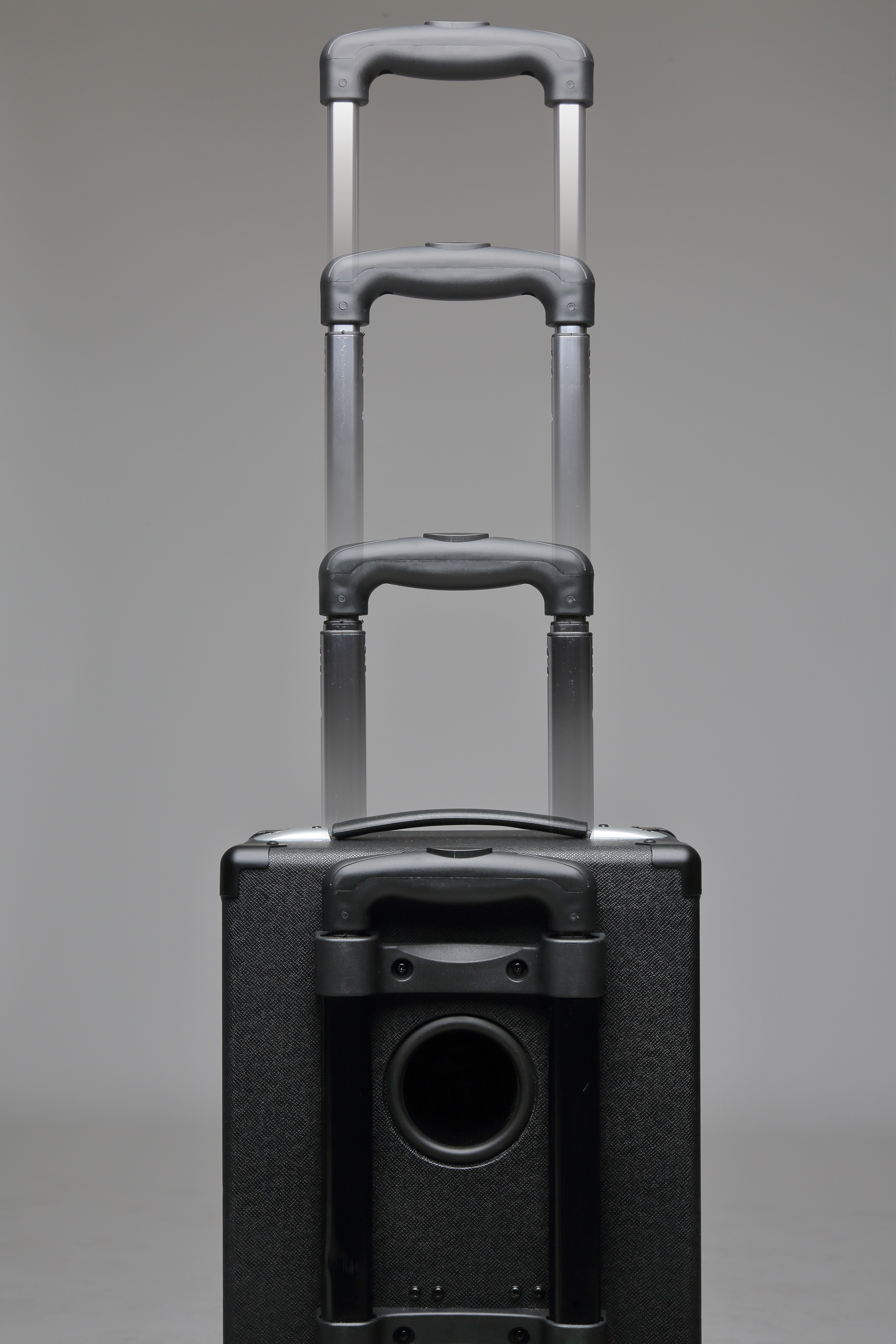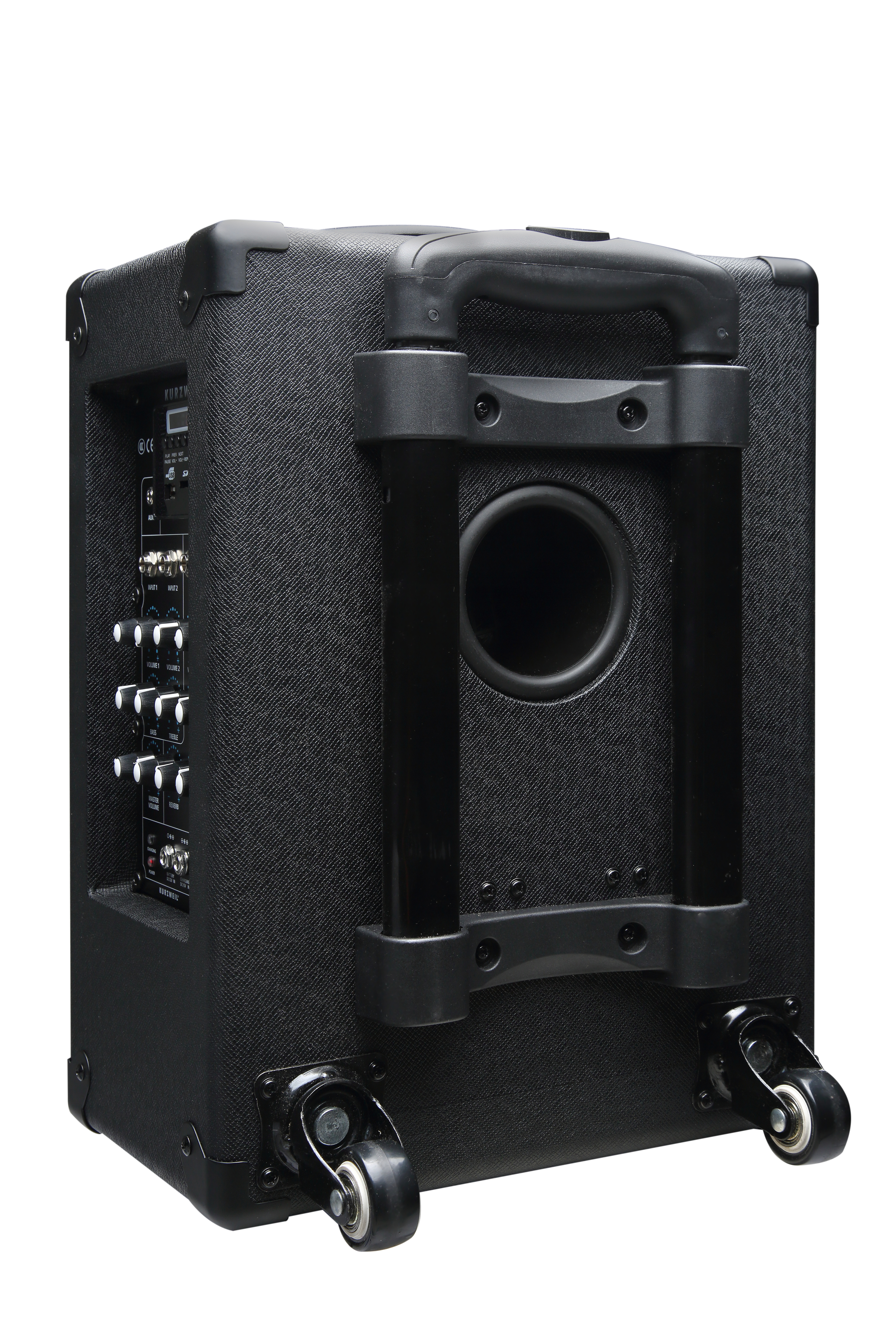 | Cabinet: | Bass Reflex (rear port) Telescoping and Fixed Handles Rear Wheels |
