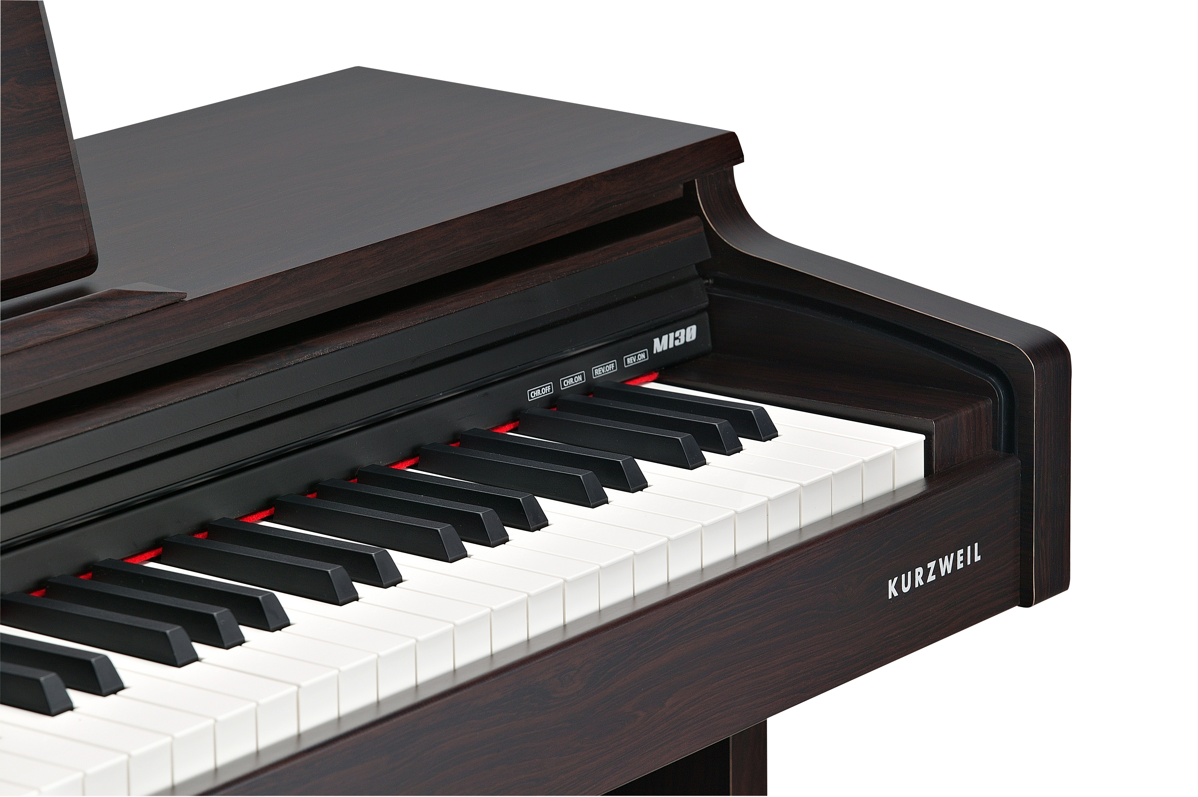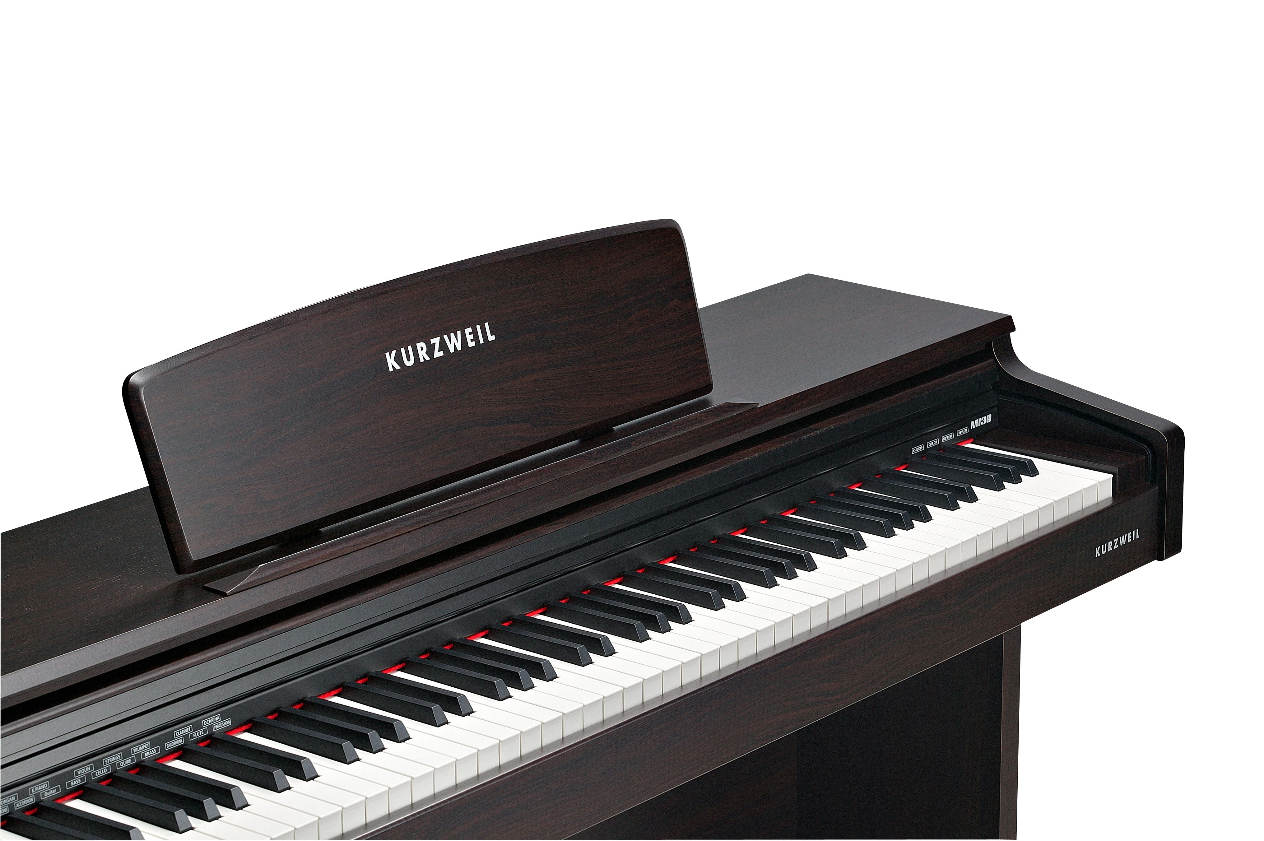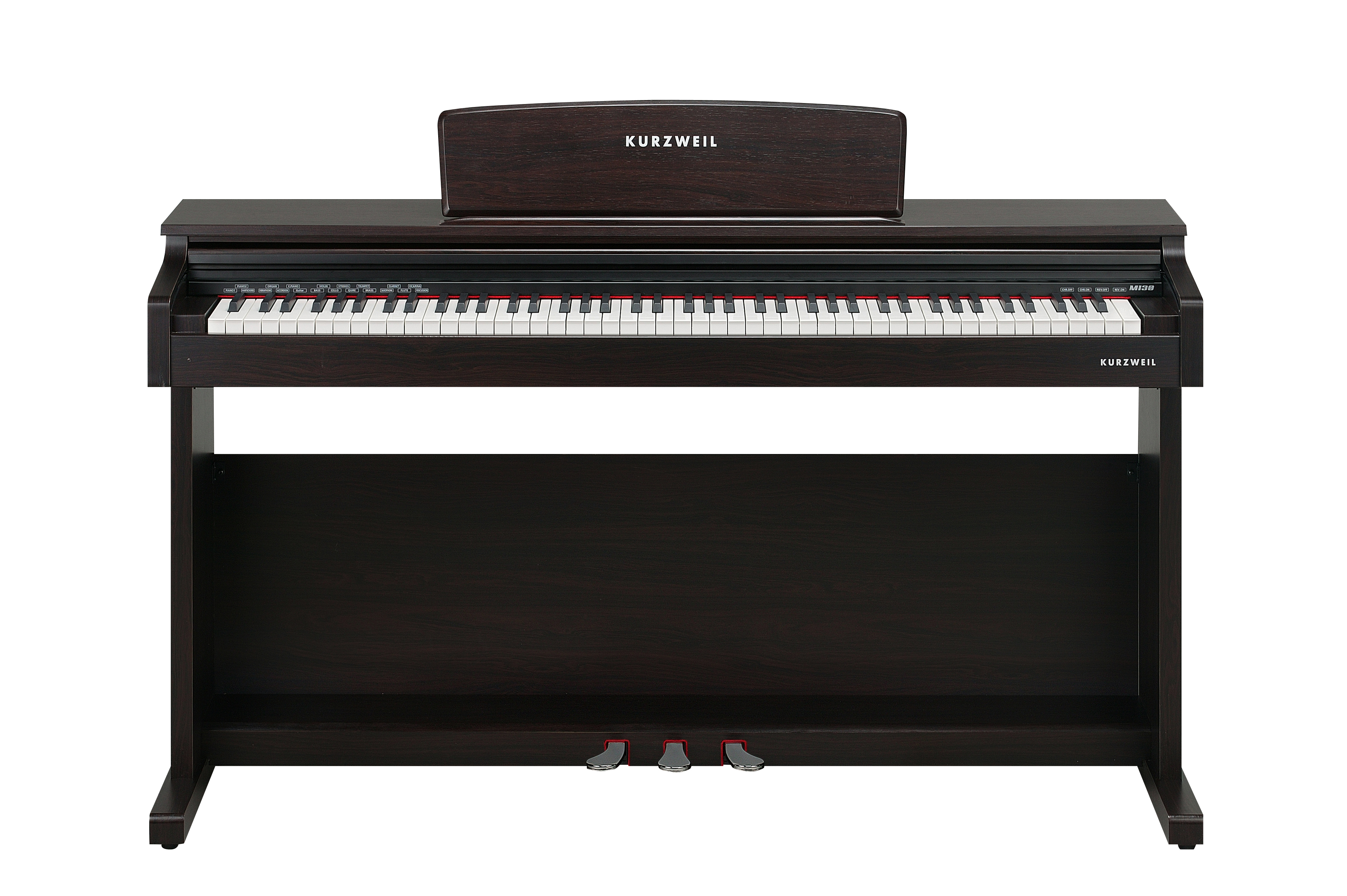 The M130 features a variety of acoustic/electric pianos, organ, guitar and string instruments.