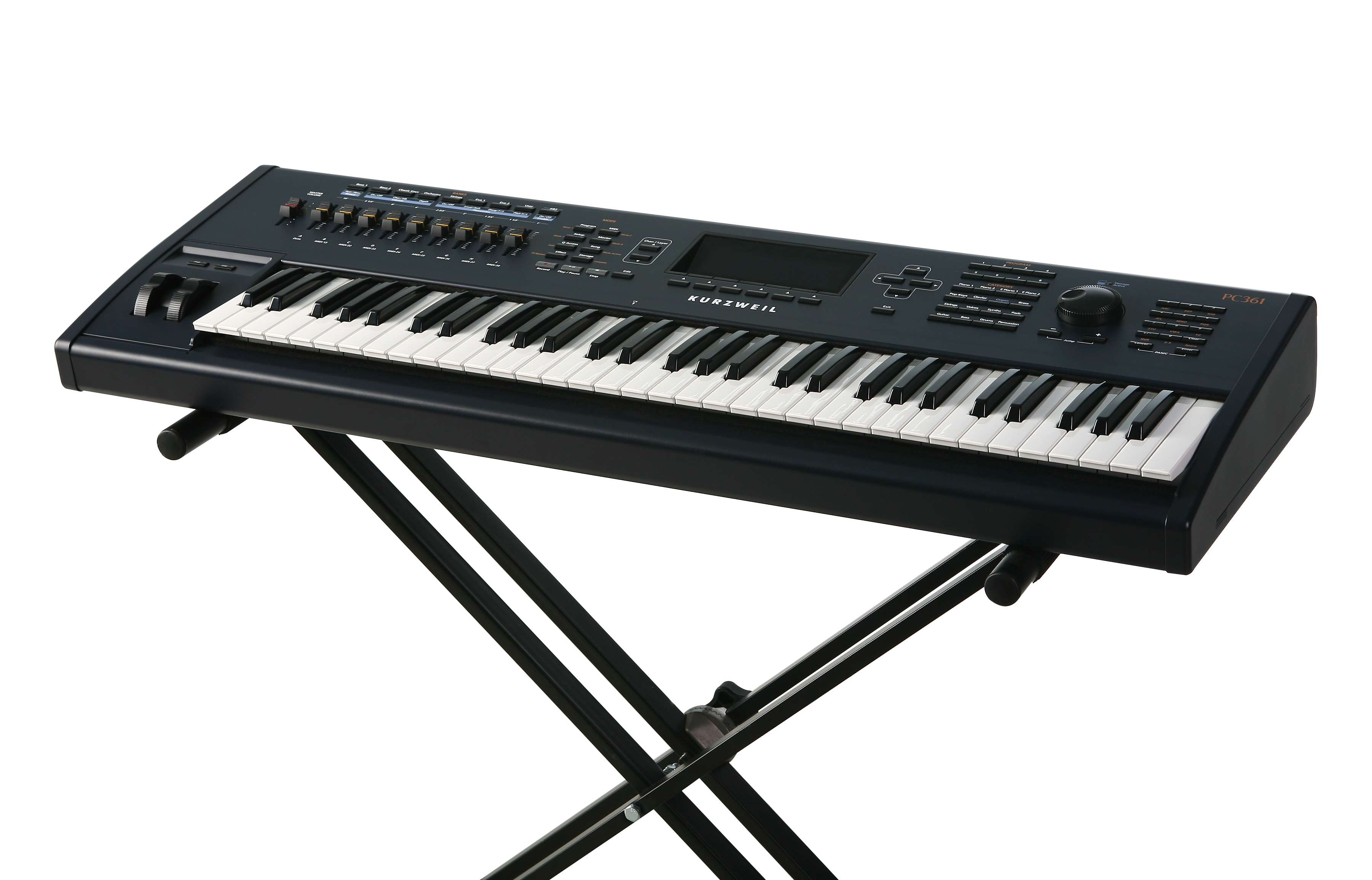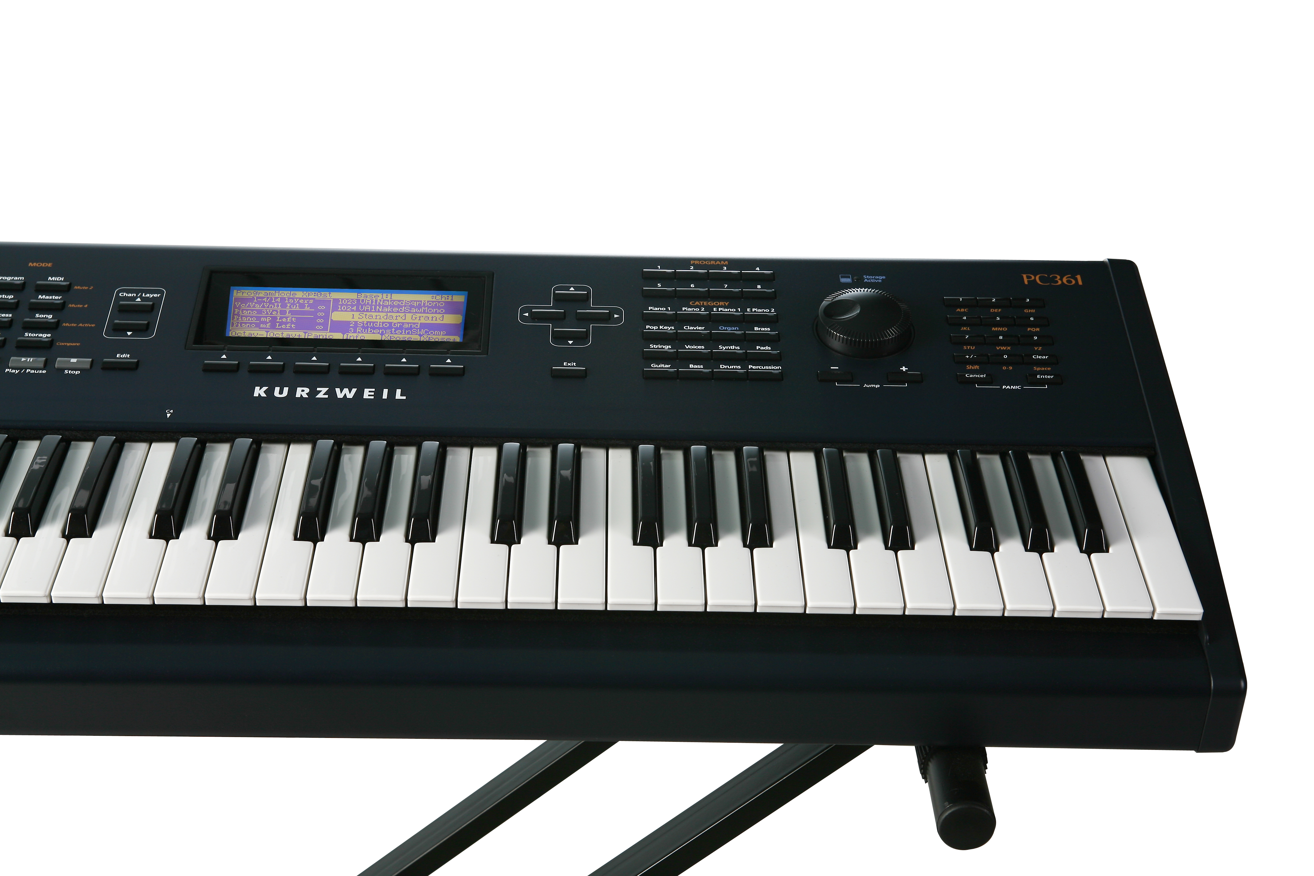 In addition to our renowned Triple Strike Grand Piano, the PC361 features hundreds of new sounds; basses, drums, guitars, and synths suited for every style and taste, along with a collection of flawless vintage keyboard emulations, KB3 Mode and over 250 orchestral and string section programs.