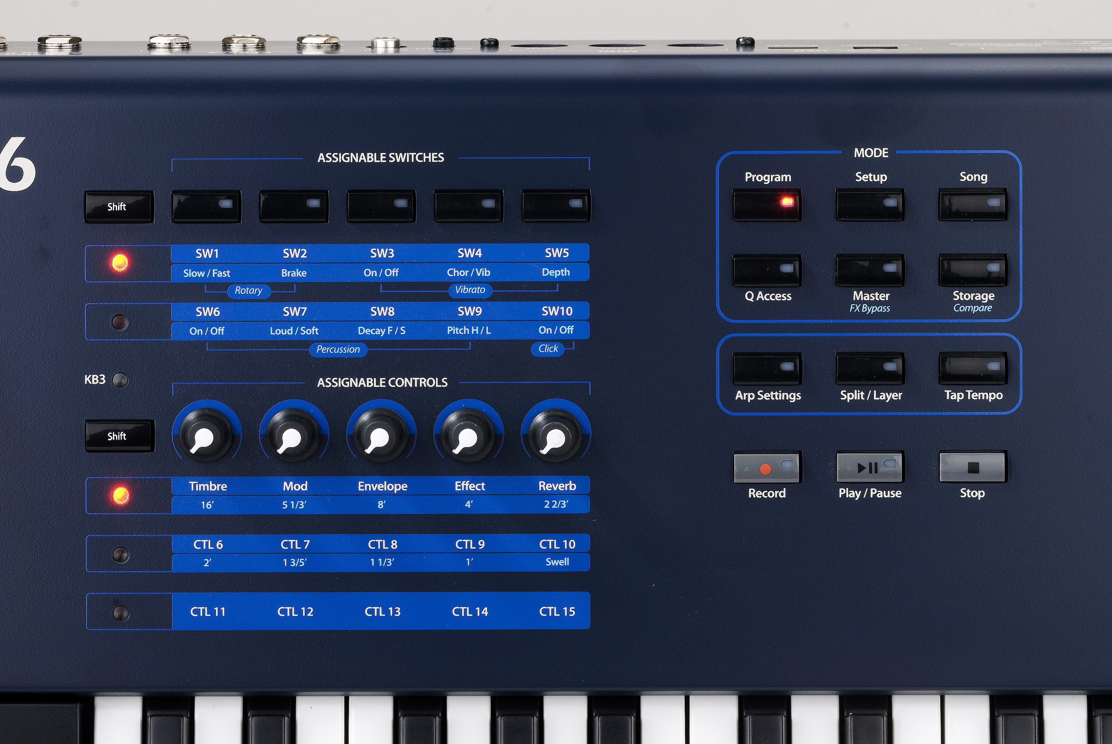We wanted to give users the quickest, simplest possible way to adjust the PC3LE’s sounds to suit individual tastes and needs. In any given program or effects chain, select relevant parameters have been pre-assigned real-time controllers for easy access. Move a controller and hit the SAVE button – no menus, no pages – and you get one touch sound customization.